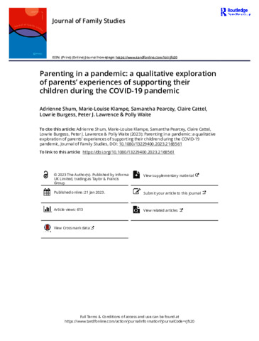 Parenting in a pandemic: a qualitative exploration of parents’ experiences of supporting their children during the COVID-19 pandemic.