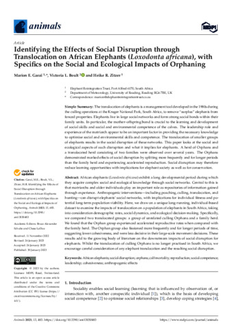 Identifying the effects of social disruption through translocation on African elephants (loxodonta africana ), with specifics on the social and ecological impacts of orphaning