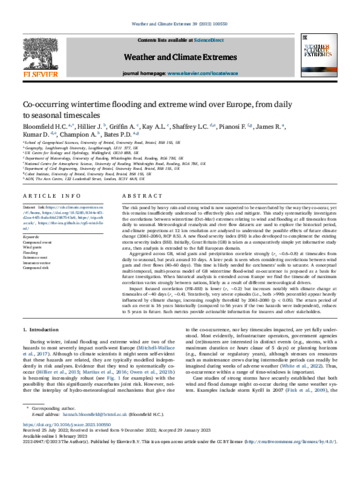 Co-occurring wintertime flooding and extreme wind over Europe, from daily to seasonal timescales.