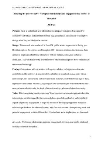 Releasing the pressure valve: workplace relationships and engagement in a context of disruption