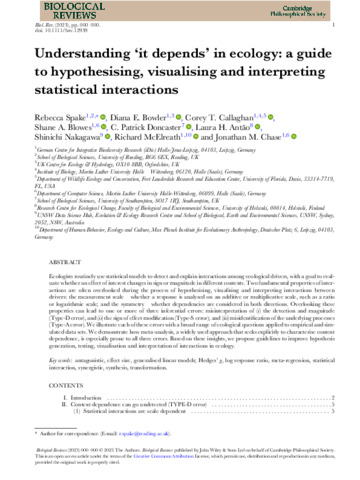 Understanding ‘it depends’ in ecology: a guide to hypothesising, visualising and interpreting statistical interactions.