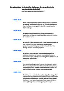 Leonidas, G. orcid id iconORCID: https://orcid.org/0000-0003-0468-6268 (2021) Designing for the future: diverse and inclusive typeface design by default. [Video]