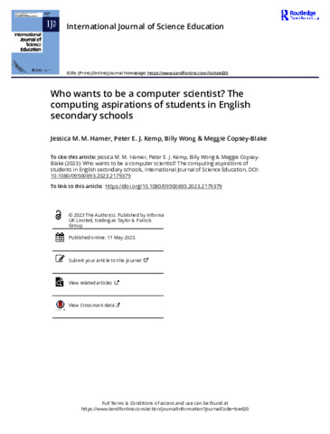 Who wants to be a computer scientist? The computing aspirations of students in English secondary schools.