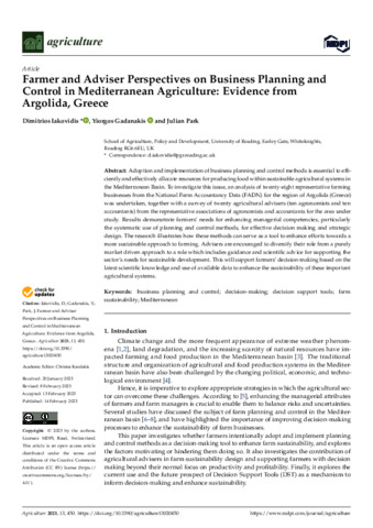 Farmer and adviser perspectives on business planning and control in Mediterranean agriculture: evidence from Argolida, Greece.