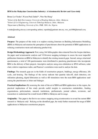 Feng, N. T. (2021), “Implementation of BIM in residential building in Malaysia”, final year project (bachelor)”, Tunku Abdul Rahman University College.