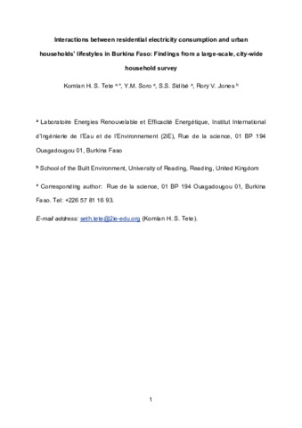 Urban domestic electricity consumption in relation to households’ lifestyles and energy behaviours in Burkina Faso: findings from a large-scale, city-wide household survey.