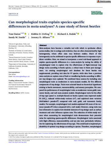 Burner, R. C., Birkemoe, T., Olsen, S. L., & Sverdrup-Thygeson, A. (2020). Sampling beetle communities: Trap design interacts with weather and species traits to bias capture rates. Ecology and Evolution, 10(24), 14300–14308. https://doi.org/10.1002/ECE3.7029
