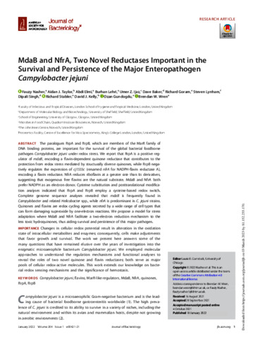 MdaB and NfrA, two novel reductases important in the survival and persistence of the major enteropathogen Campylobacter jejuni.