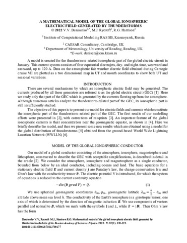 A mathematical model of the global ionospheric electric field generated by thunderstorms.