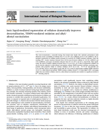 Ionic liquid-mediated regeneration of cellulose dramatically improves decrystallization, TEMPO-mediated oxidation and alkyl/alkenyl succinylation.