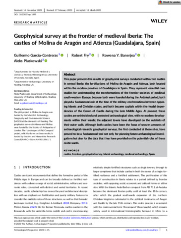 García-Contreras Ruiz, G., Fry, R. orcid id iconORCID: https://orcid.org/0000-0002-9711-1131, Banerjea, R. Y. orcid id iconORCID: https://orcid.org/0000-0002-1786-357X and Pluskowski, A. orcid id iconORCID: https://orcid.org/0000-0002-4494-7664 (2023) Geophysical survey at the frontier of medieval Iberia: the castles of Molina de Aragón and Atienza (Guadalajara, Spain). Archaeological Prospection, 30 (3). pp. 391-405. ISSN 1099-0763 doi: 10.1002/arp.1899