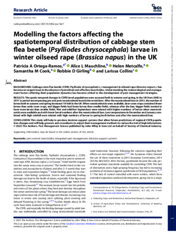 Modelling the factors affecting the spatiotemporal distribution of cabbage stem flea beetle (Psylliodes chrysocephala) larvae in winter oilseed rape (Brassica napus) in the UK.