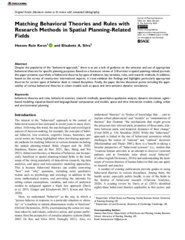 Matching behavioral theories and rules with research methods in spatial planning-related fields.