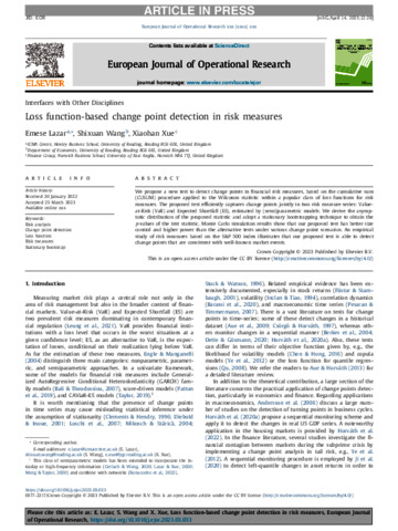 Lazar, E. orcid id iconORCID: https://orcid.org/0000-0002-8761-0754, Wang, S. orcid id iconORCID: https://orcid.org/0000-0003-2113-5521 and Xue, X. (2023) Loss function-based change point detection in risk measures. European Journal of Operational Research, 310 (1). pp. 415-431. ISSN 0377-2217 doi: 10.1016/j.ejor.2023.03.033