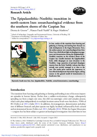 de Groene, D., Fazeli Nashli, H. and Matthews, R. orcid id iconORCID: https://orcid.org/0000-0002-8316-4312 (2023) The Epipalaeolithic–Neolithic transition in north-eastern Iran: zooarchaeological evidence from the southern shores of the Caspian Sea. Antiquity, 97 (393). pp. 541-556. ISSN 0003-598X doi: 10.15184/aqy.2023.37