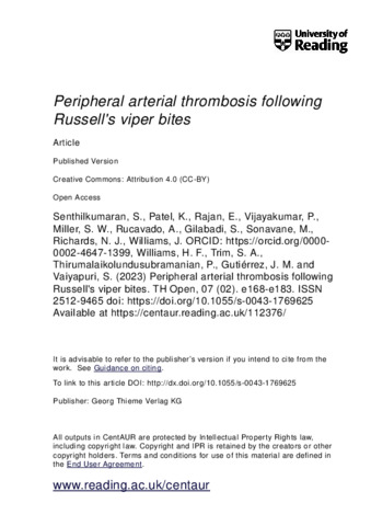 Senthilkumaran, S., Patel, K., Rajan, E., Vijayakumar, P., Miller, S. W., Rucavado, A., Gilabadi, S., Sonavane, M., Richards, N. J., Williams, J., Williams, H. F., Trim, S. A., Thirumalaikolundusubramanian, P., Gutiérrez, J. M. and Vaiyapuri, S. ORCID: https://orcid.org/0000-0002-6006-6517