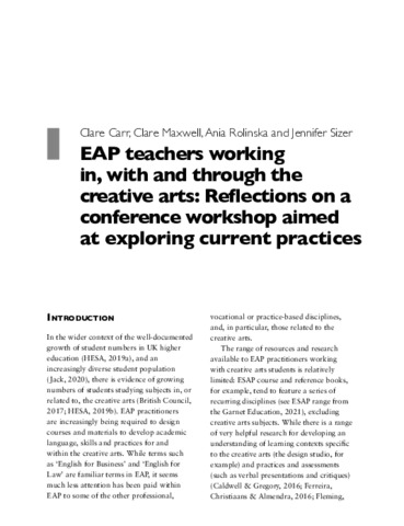 EAP teachers working in, with and through the creative arts: reflections on a conference workshop aimed at exploring current practices.