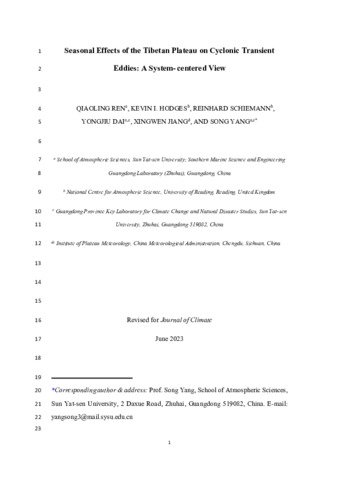 Seasonal effects of the Tibetan plateau on the cyclonic transient eddies: a system-centered view.