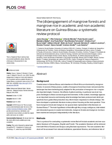 The (dis)engagement of mangrove forests and mangrove rice in academic and non-academic literature on Guinea-Bissau-a systematic review protocol.
