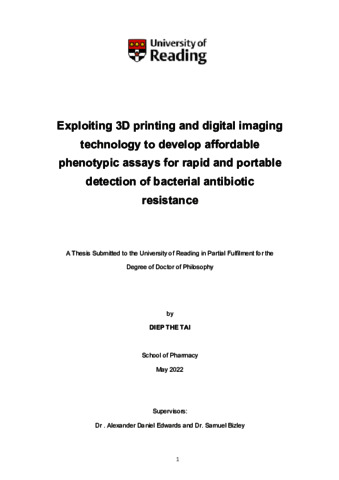 Diep, T. T. (2022) Exploiting 3D printing and digital imaging technology to develop affordable phenotypic assays for rapid and portable detection of bacterial antibiotic resistance. PhD thesis, University of Reading. doi: 10.48683/1926.00111761
