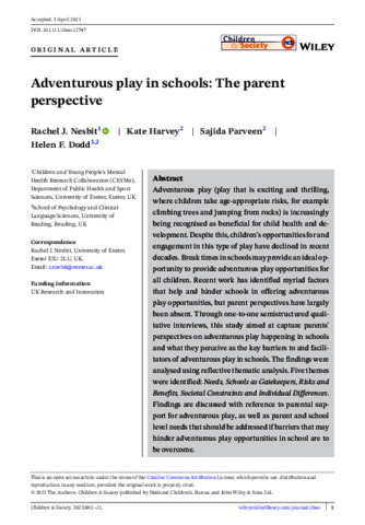 Adventurous play in schools: the parent perspective.