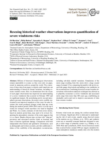 Rescuing historical weather observations improves quantification of severe windstorm risks.