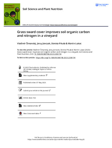 Grass sward cover improves soil organic carbon and nitrogen in a vineyard.