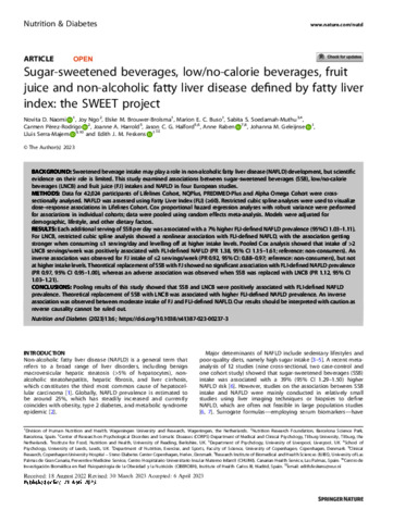 Sugar-sweetened beverages, low/no-calorie beverages, fruit juice and non-alcoholic fatty liver disease defined by fatty liver index: the SWEET project.