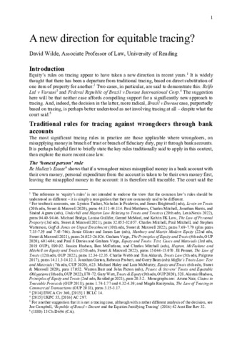Wilde, D. (2023) A new direction for equitable tracing? Trust Law International, 37 (1). pp. 24-42. ISSN 0962-2624