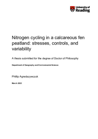 Agredazywczuk, P. (2023) Nitrogen cycling in a calcareous fen peatland: stresses, controls, and variability. PhD thesis, University of Reading. doi: 10.48683/1926.00111877