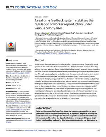 A real-time feedback system stabilises the regulation of worker reproduction under various colony sizes.