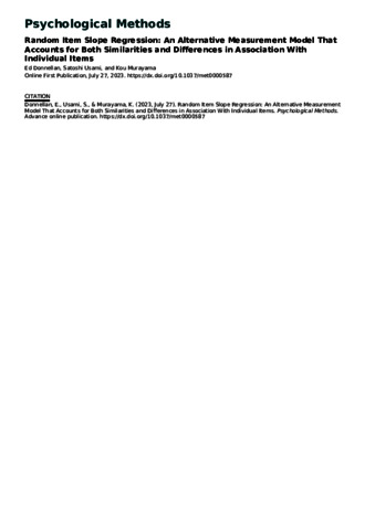 Donnellan, E., Usami, S. and Murayama, K. (2023) Random item slope regression: an alternative measurement model that accounts for both similarities and differences in the association with individual items. Psychological Methods. ISSN 1939-1463 doi: 10.1037/met0000587