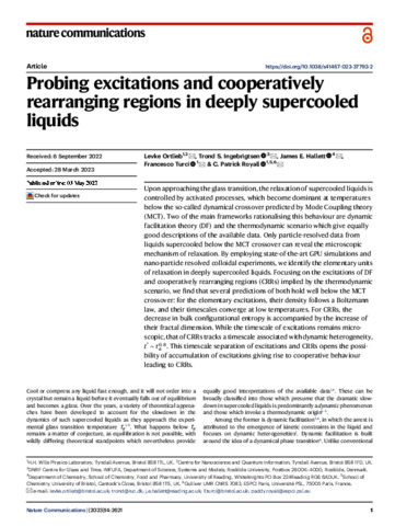 Ortlieb, L., Ingebrigtsen, T. S., Hallett, J. E. orcid id iconORCID: https://orcid.org/0000-0002-9747-9980, Turci, F. and Royall, C. P. (2023) Probing excitations and cooperatively rearranging regions in deeply supercooled liquids. Nature Communications, 14. 2621. ISSN 2041-1723 doi: 10.1038/s41467-023-37793-2