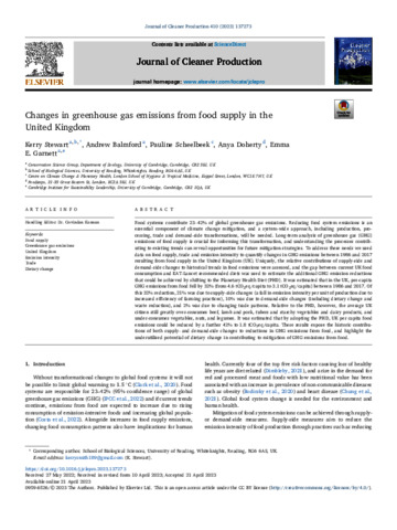 Stewart, K. orcid id iconORCID: https://orcid.org/0000-0001-8175-2543, Balmford, A., Scheelbeek, P. orcid id iconORCID: https://orcid.org/0000-0002-6209-2284, Doherty, A. orcid id iconORCID: https://orcid.org/0000-0002-3573-8983 and Garnett, E. E. (2023) Changes in greenhouse gas emissions from food supply in the United Kingdom. Journal of Cleaner Production, 410. 137273. ISSN 0959-6526 doi: 10.1016/j.jclepro.2023.137273