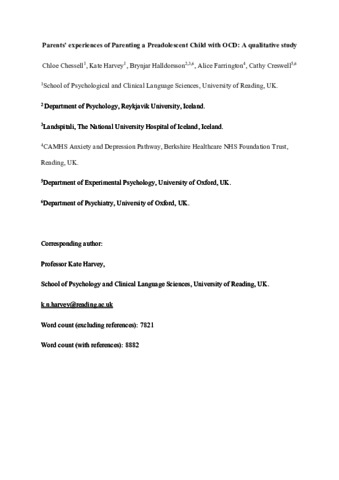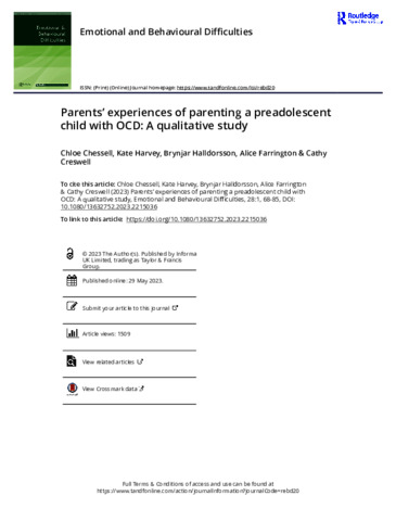 Parents’ experiences of parenting a preadolescent child with OCD: a qualitative study.