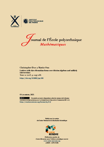 Daw, C. orcid id iconORCID: https://orcid.org/0000-0002-2488-6729 and Orr, M. (2023) Lattices with skew-Hermitian forms over division algebras and unlikely intersections. Journal de l'École polytechnique — Mathématiques, 10. pp. 1097-1156. ISSN 2270-518X doi: 10.5802/jep.240