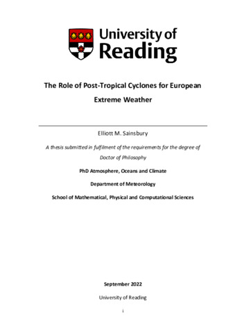Sainsbury, E. M. (2023) The role of post-tropical cyclones for European extreme weather. PhD thesis, University of Reading. doi: 10.48683/1926.00111982