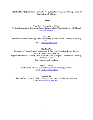 A study of new labour market entrants’ job satisfaction trajectories during a series of consecutive job changes.