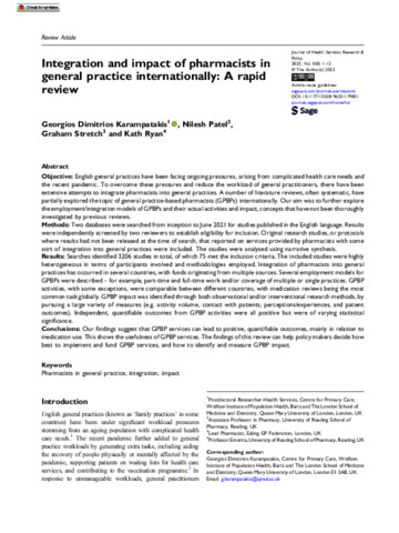 Integration and impact of pharmacists in general practice internationally: a rapid review.