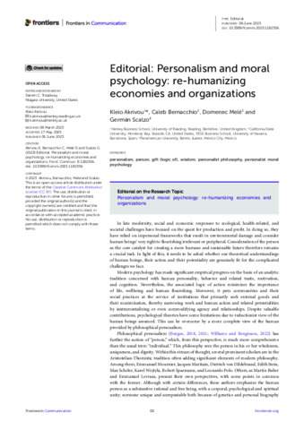 Editorial: Personalism and moral psychology: re-humanizing economies and organizations.