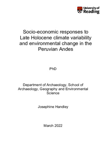 Handley, J. (2022) Socio-economic responses to Late Holocene climate variability and environmental change in the Peruvian Andes. PhD thesis, University of Reading. doi: 10.48683/1926.00112049