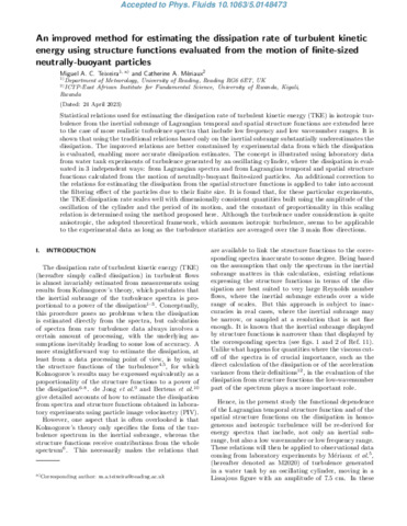 An improved method for estimating the dissipation rate of turbulent kinetic energy using structure functions evaluated from the motion of finite-sized neutrally buoyant particles.