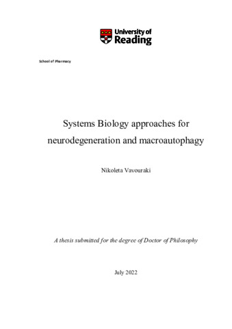 Vavouraki, N. (2023) Systems biology approaches for neurodegeneration and macroautophagy. PhD thesis, University of Reading. doi: 10.48683/1926.00112198