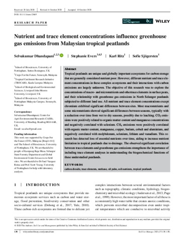 Nutrient and trace element concentrations influence greenhouse gas emissions from Malaysian tropical peatlands.