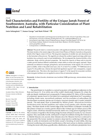 Soil characteristics and fertility of the unique jarrah forest of Southwestern Australia, with particular consideration of plant nutrition and land rehabilitation.