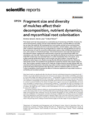 Fragment size and diversity of mulches affect their decomposition, nutrient dynamics, and mycorrhizal root colonisation.
