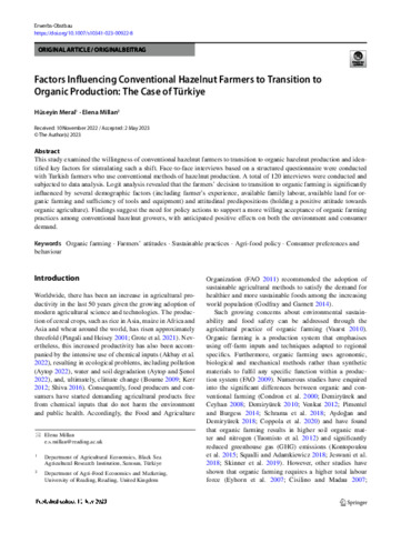 [thumbnail of Meral and Millan (2023) Factors Influencing Conventional Hazelnut Farmers to Transition to Organic Production The Case of Türkiye.pdf]