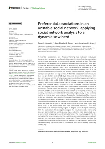 Preferential associations in an unstable social network: applying social network analysis to a dynamic sow herd.