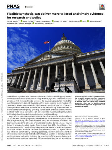 Flexible synthesis can deliver more tailored and timely evidence for research and policy