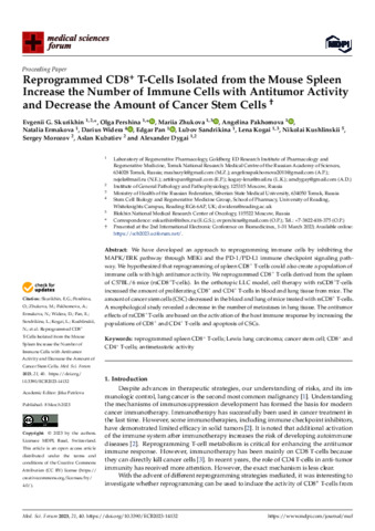 Reprogrammed CD8+ T-cells isolated from the mouse spleen increase the number of immune cells with antitumor activity and decrease the amount of cancer stem cells.